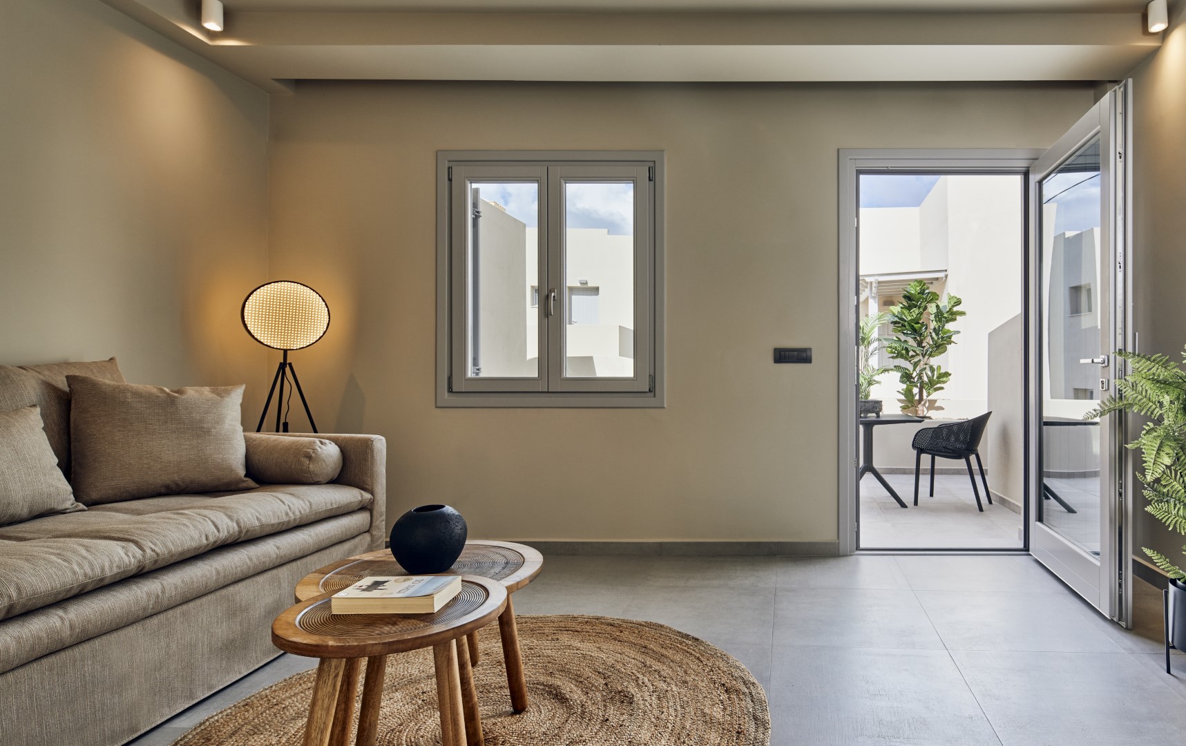 A refuge for precious relaxation; a haven to enjoy! The Standard Suites of Mayu Suites Santorini exceed all standard expectations with their stylish interior design and deeply comfortable beds. Tucked away into the calmness of Pyrgos, Santorini and enhanced with spacious balconies, these are hideouts to reconnect with your loved ones and relish a much-needed getaway.